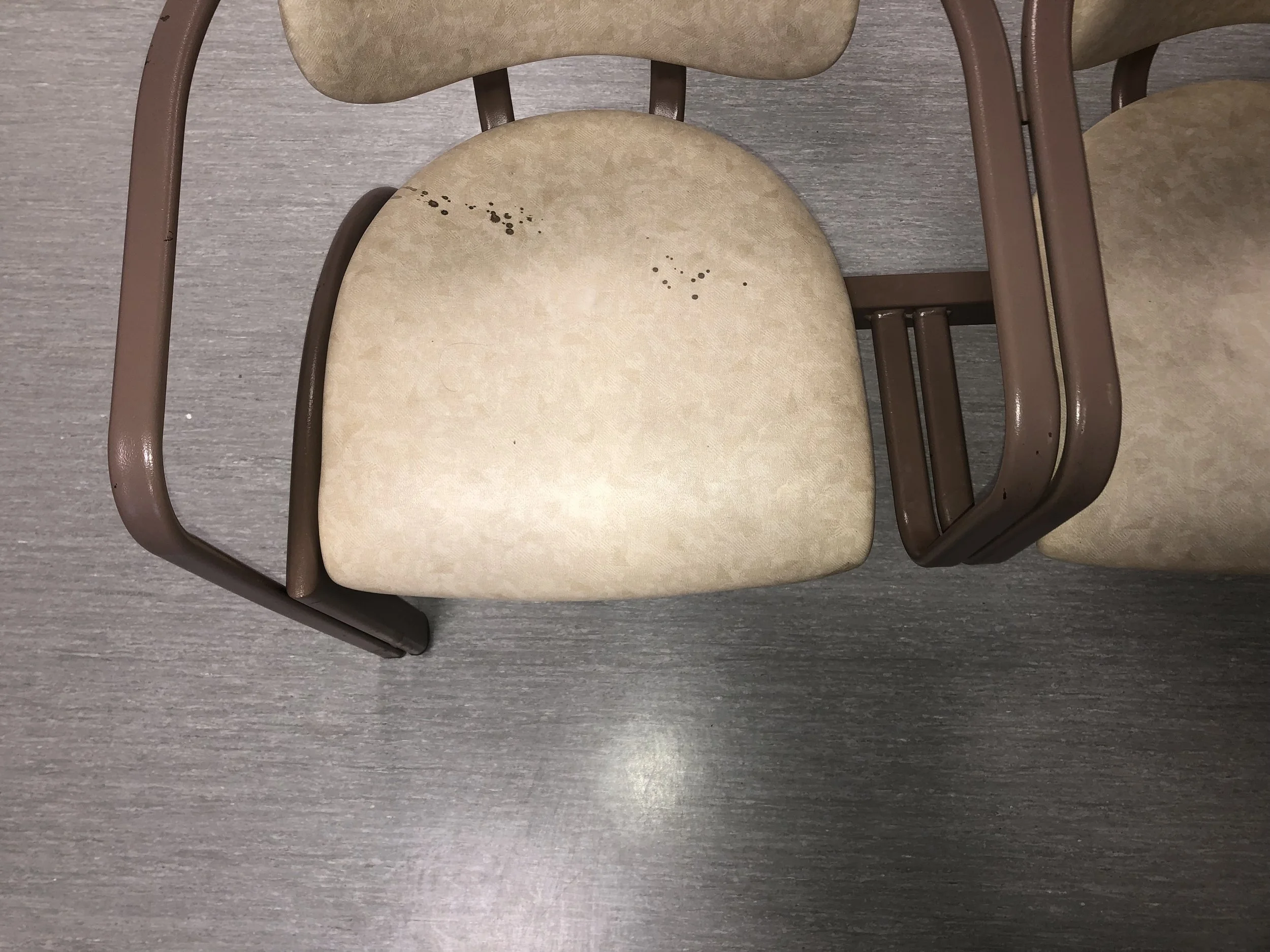 Tout semble figer dans une salle d’attente, et pourtant il ya du mouvement avec les attendants. Mais quna ils ne sont plus là à leur topur les meubles attendent.